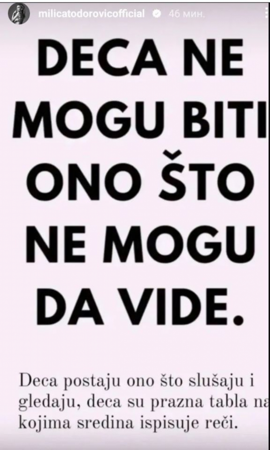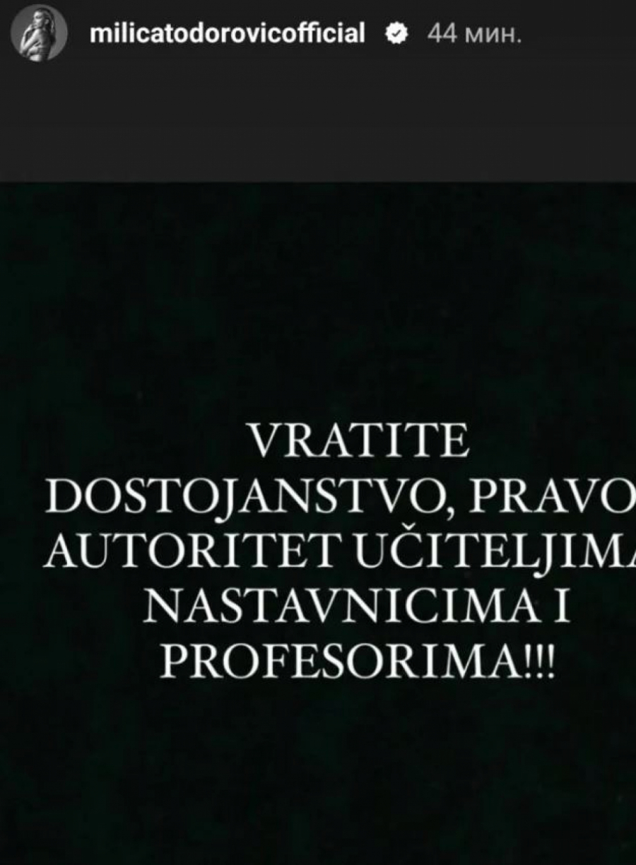 -Vratite dostojanstvo, pravo i autoritet učiteljima, nastavnicima i profesorima –napisala je Milica u objavi na Instagramu.