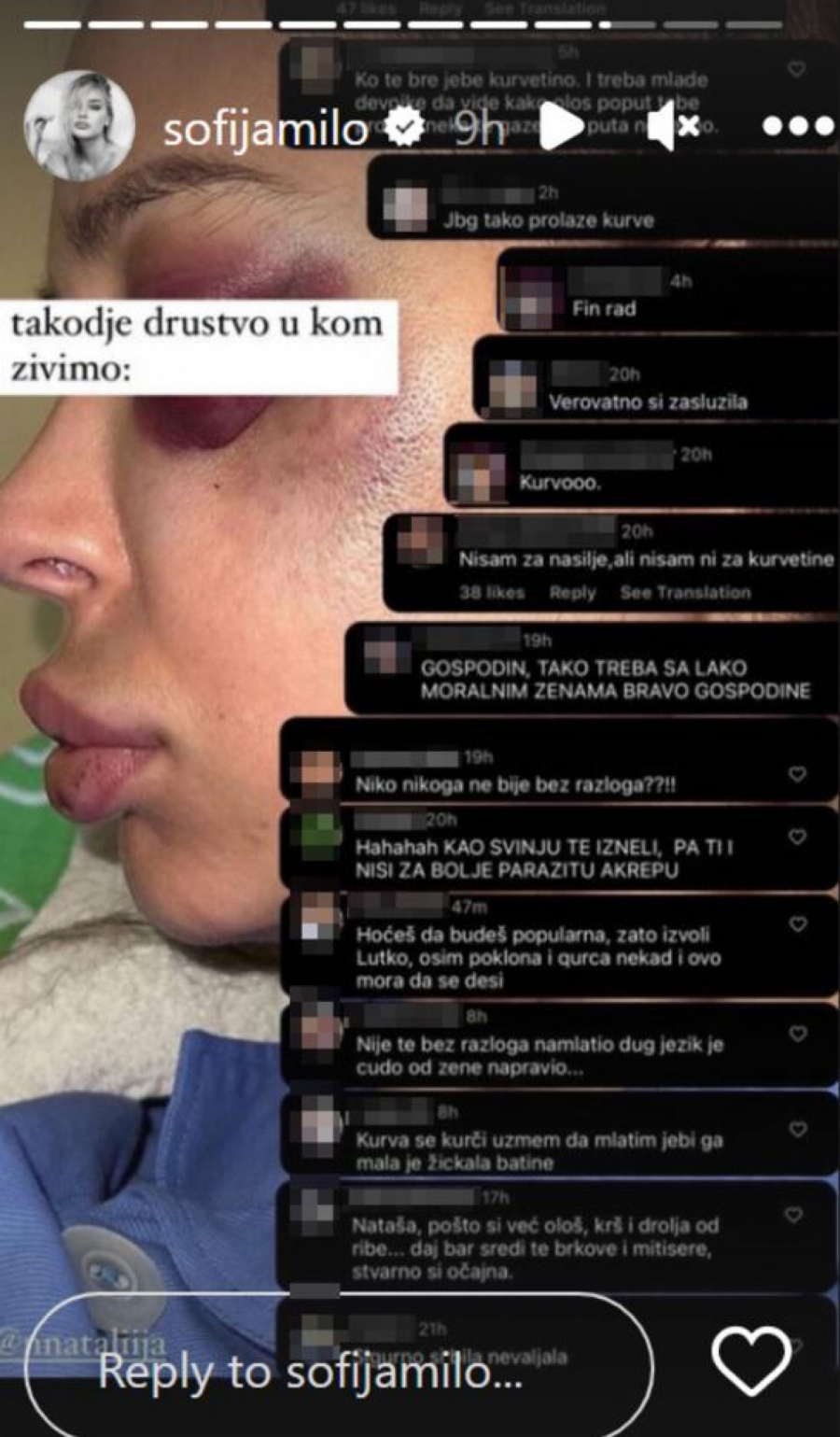 -Da li je prelom jagodične kosti "nešto između"? Kao i još par dijagnoza. Evo prosudite sami, a moji advokati i ja imamo sve crno na belo od izveštaja. Razumem gospodina Karadarevića da brani svog klijenta na sve moguće načine... Ne mogu još uvek detaljnije da pričam, ali sve će se obelodaniti kad dođe vreme za to. Sve dokaze dostavićemo tužilaštvu koje vodi postupak - rekla je Nataša.
