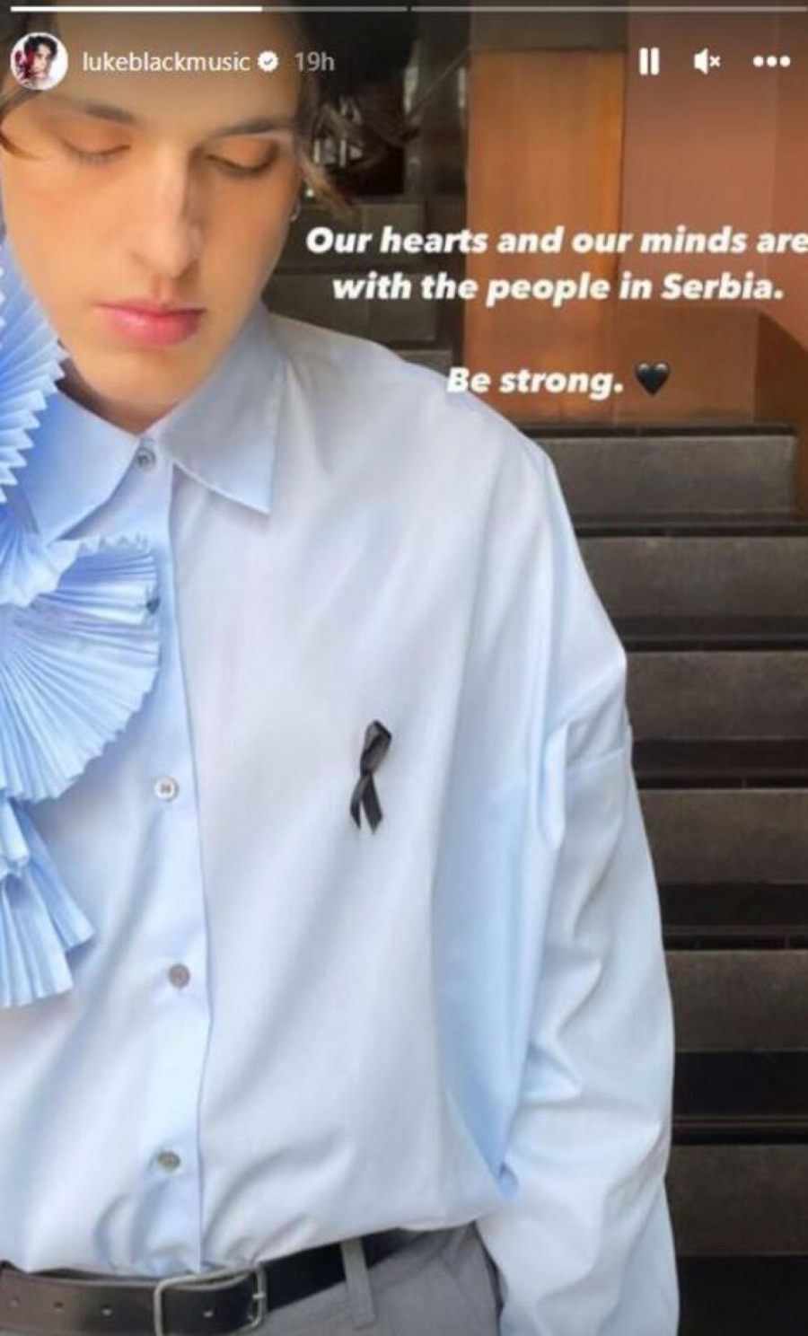Luk Blek je inače sve oduševio u prvom polufinalu Evrovizije. Osim energičnim nastupom, to je učinio i gestom prema porodicama žrtava stradalim u masovnim ubistvima koja su se nedavno dogodila u Srbiji.