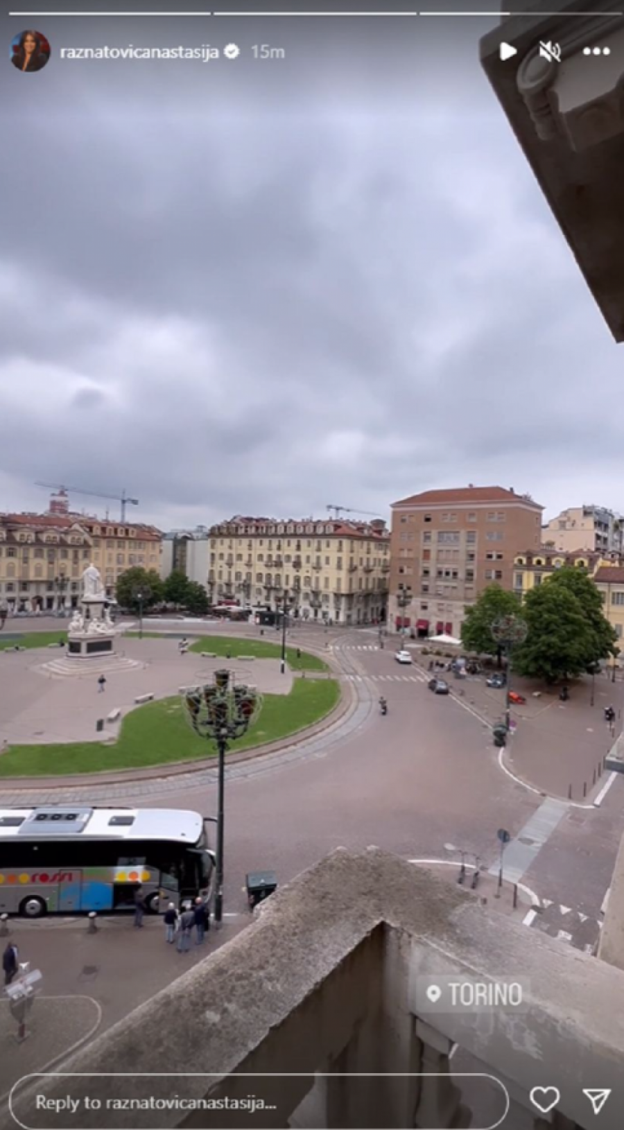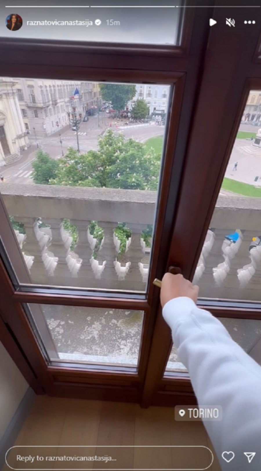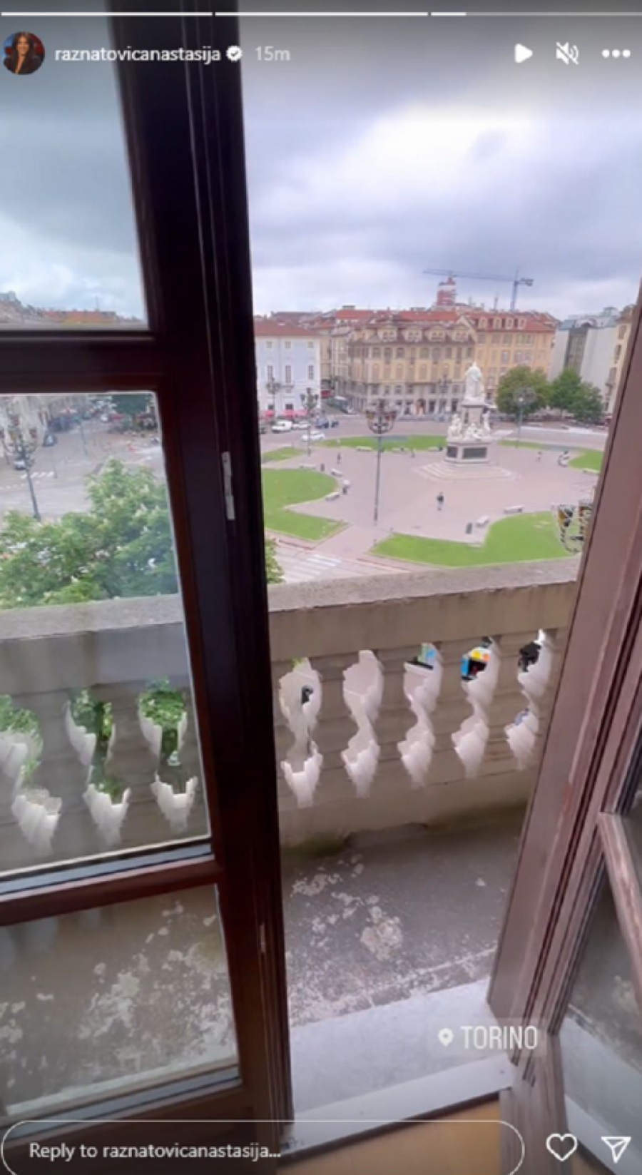 Anastasija se na društvenoj mreži Instagram oglasila i otkrila kako uživa u Torinu, a pogled sa njene terase na trg ovog grada obara s nogu.
