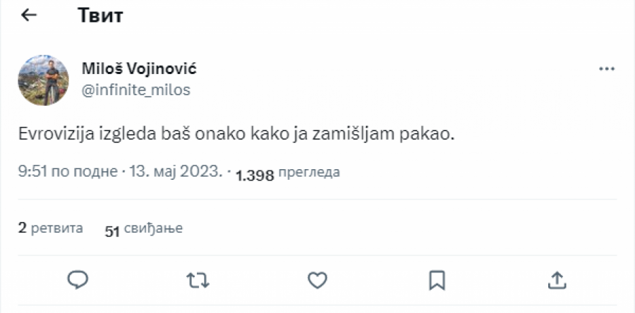 Tradicionalno, Evrovizija manifestacija izazvala je čitav vrtlog komentara na Tviteru, pa se tamo mogu pročitati zaista urnebesni i zanimljivi na račun skoro, svih učesnika.