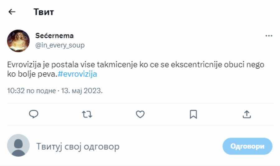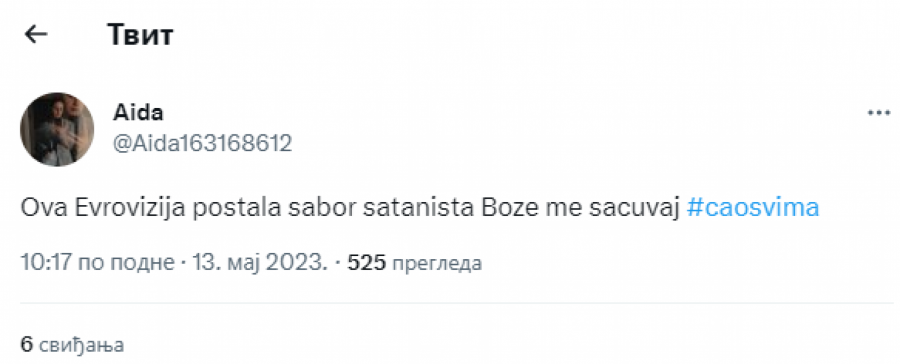 - Ova Evrovizija postala sabor satanista, Bože me sačuvaj. - napisala je izvesna korisnica Tvitera.