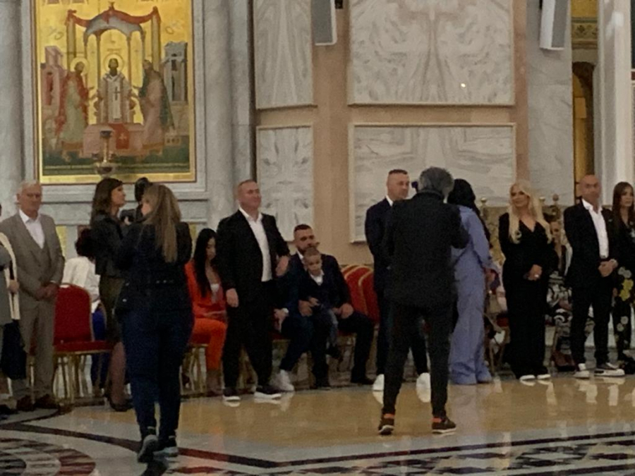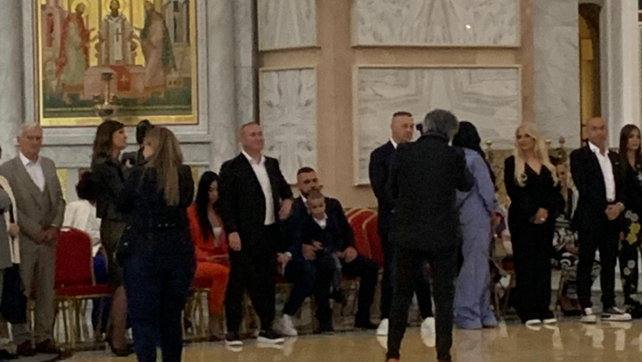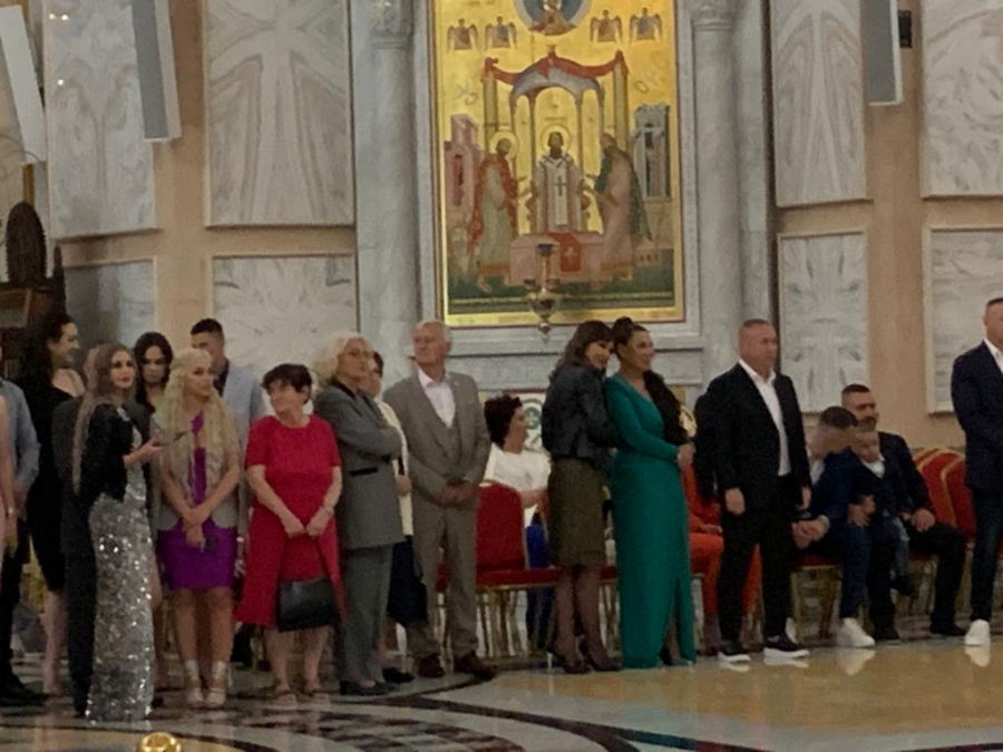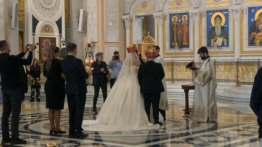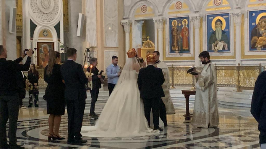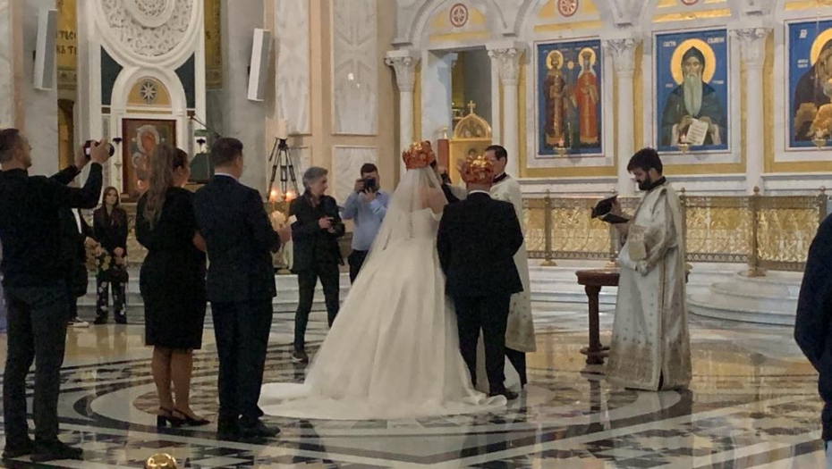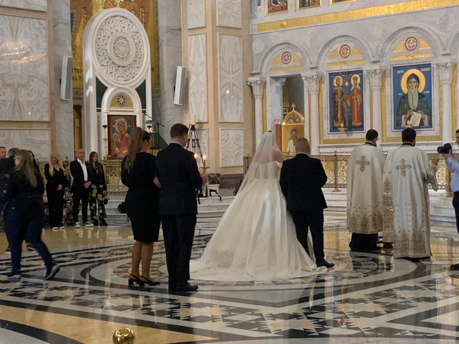 Ispred hrama Svetog Save pristižu gosti sa svih strana, a pored mladenaca, ponosni roditelji, ali i baka i deka su zablistali.