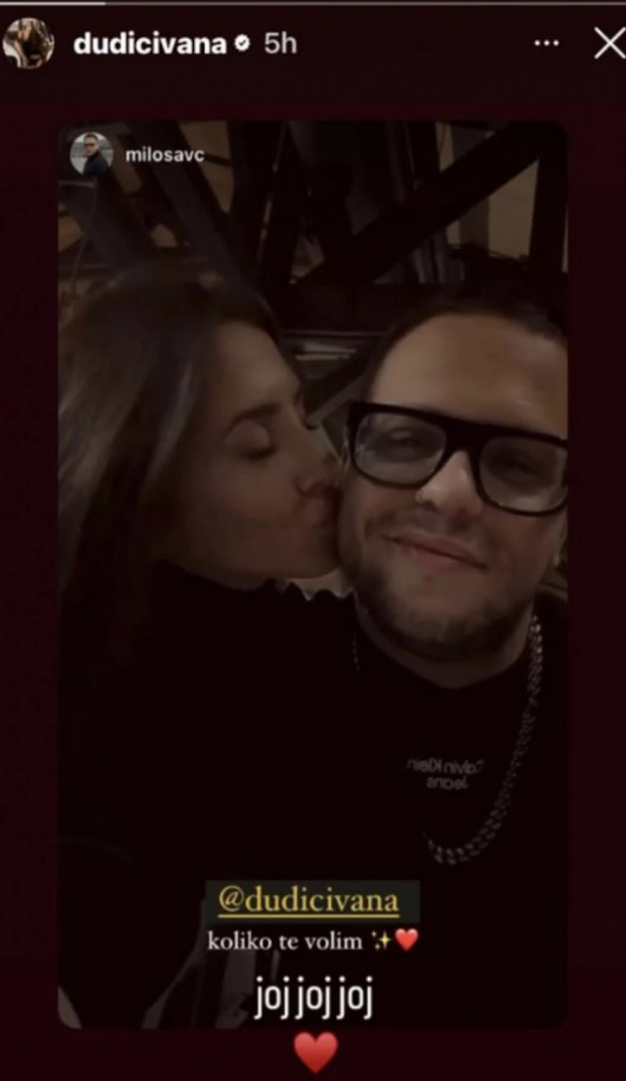 Dudićeva je podelila i fotografiju na kojoj ga ljubi , a rečenica: "Joj, koliko te volim" podstakla je njene fanove da pomisle da je u pitanju novi dečko, tvrde domaći mediji.