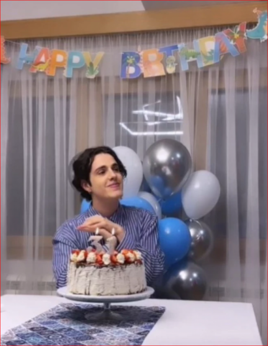 Iza Luke su se nalazili baloni u beloj, sivoj i plavoj boji, dok se ispred njega nalazila torta sa svećicama.