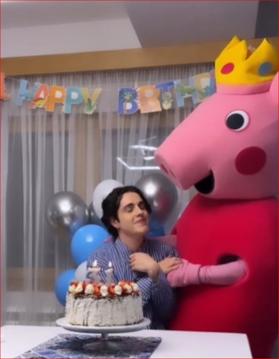 Drugari su mu otpevali rođendansku pesmu, a onda se pojavila maskota sa likom Pepe Praseta, koja ga je zagrlila.Maskota sa likom Pepe Praseta se ove godine pojavila u Liverpulu na Evroviziji, a takom nastupa predstavnice Ujedinjenog Kraljestva povela je "vozić".