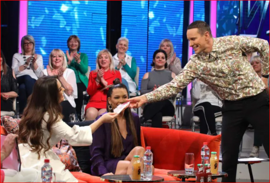 -Imamo jedan mali, simbolični poklončić, da pamtiš uvek ovu emisiju (smeh) To je za novorođenče, jedna cucla za porodilište, jedna da ima kada dođe kući- rekli su voditelji.