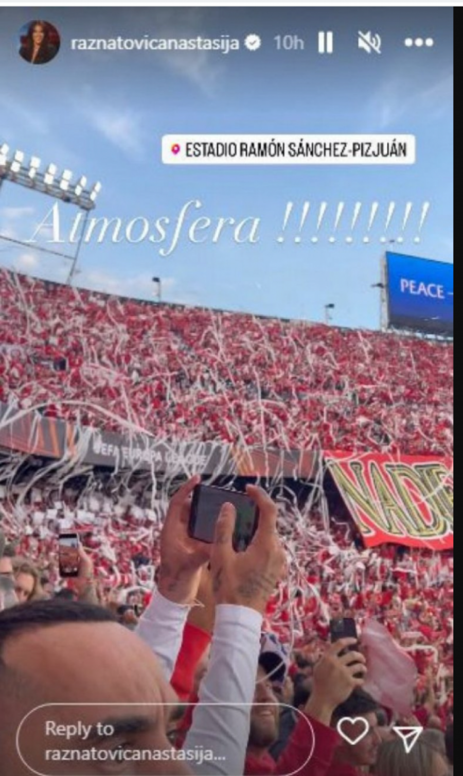 Upravo tome mogu da posvedoče i zajedničke fotografije koje oboje neretko dele na društvenim mrežama, a sinoć je osvanula i najnovija sa tribina stadiona "Ramón Sánchez Pizjuán" gde su brat Nemanje Gudelja i trudna Anastasija u sjajnoj atmosferi zdušno navijali za tim našeg reprezentativca.