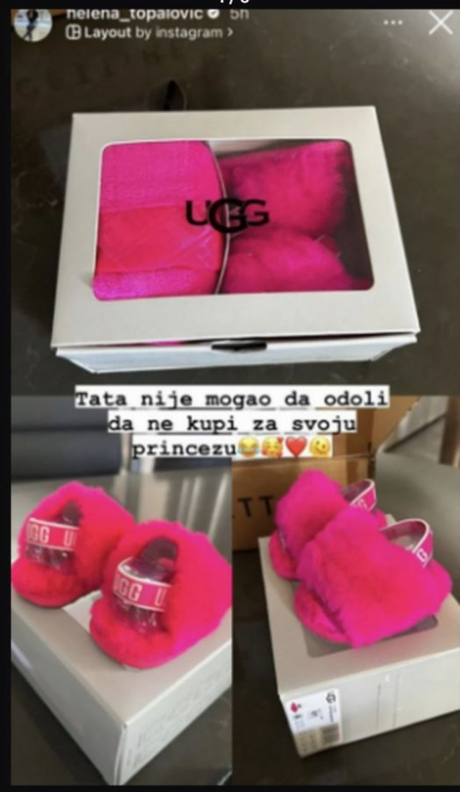 Pored toga, Helena se pohvalila i malim poklonom za ćerkicu, jer kako kaže tata nije mogao da odoli, a u pitanju su UGG sandalice za princezu u roze boji.