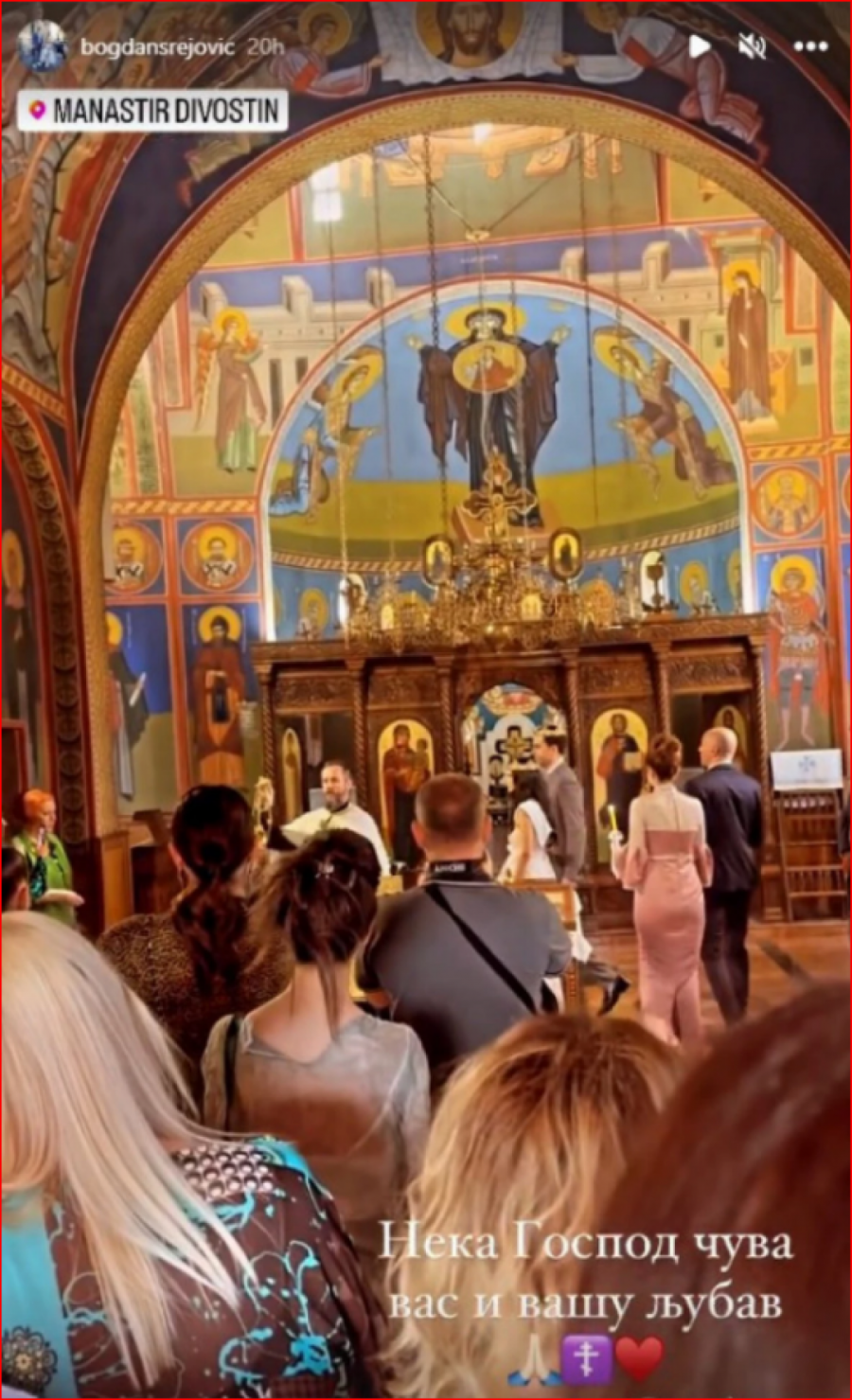 Jovana je na pomenutoj društvenoj mreži podelila sliku iz manastira Divostin, gde su bili na jednom venčanju, uz poruku „Neka Gospod čuva vas i vašu ljubav”. Misica je pozirala u beloj haljini, a Bogdan u elegantnom odelu.