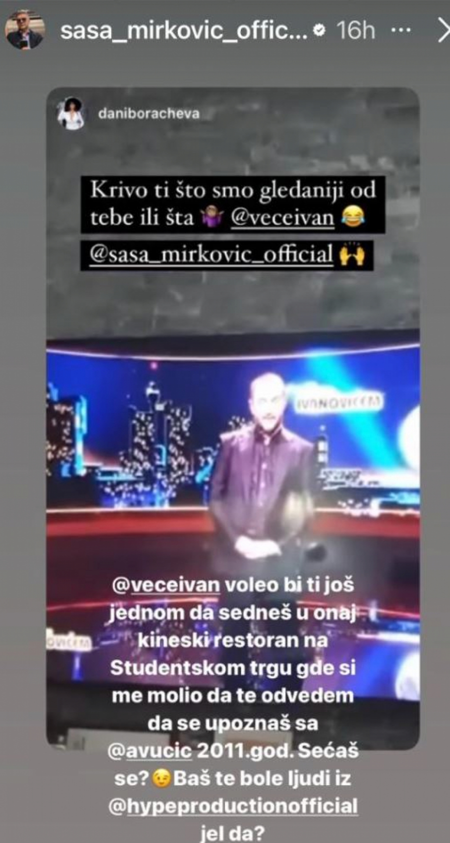 Producent je na svom storiju repostovao stori voditeljke emisije “Desetka” na HYPE televiziji, Daniele Boračeve.