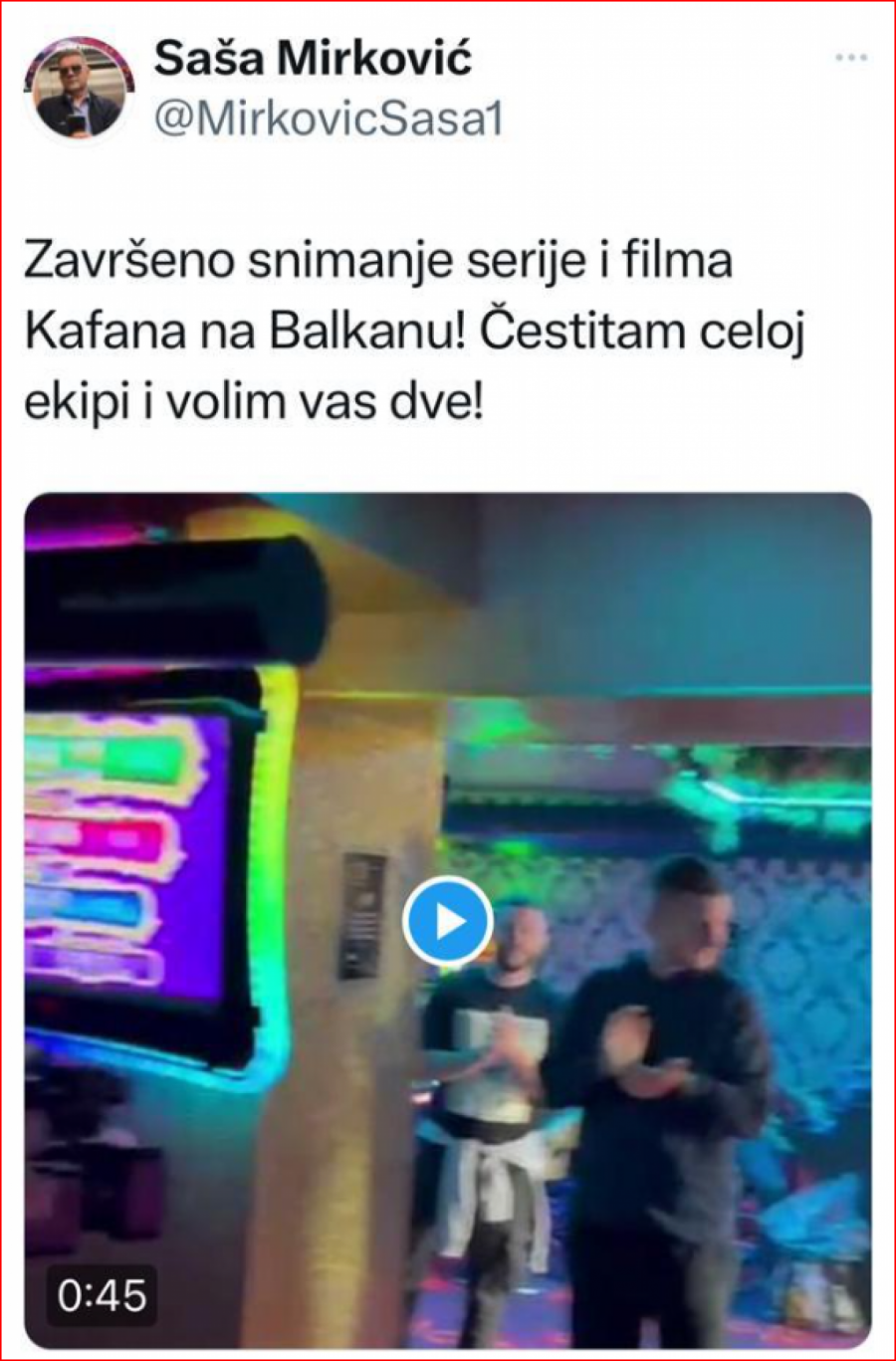 Direktor i vlasnik Hype Produkcije Saša Mirković oglasio se na svom Tviteru gde je potvrdio da je snimanje serije i filma “Kafana na Balkanu” završeno.
