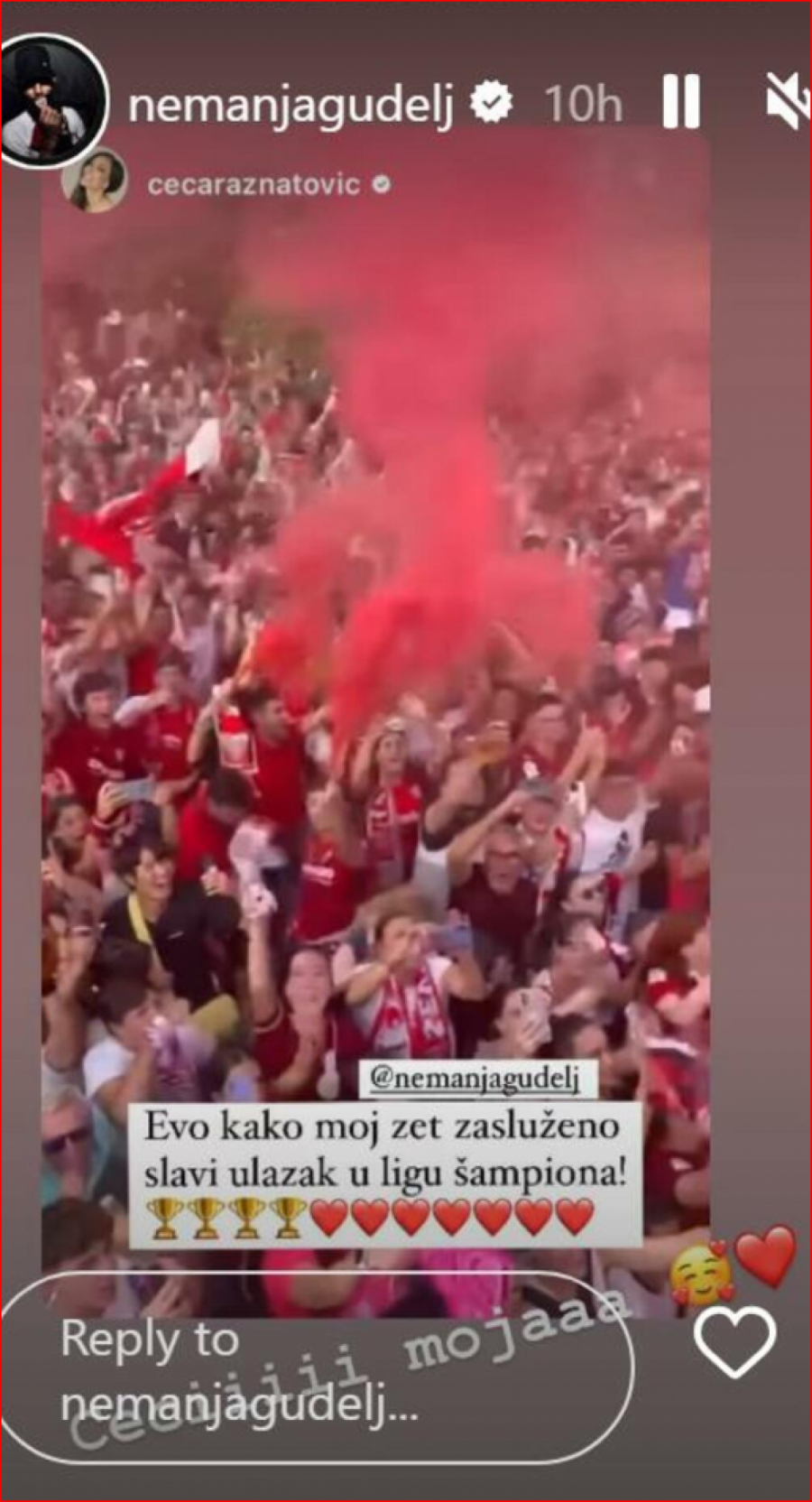 - Evo kako moj zet zasluženo slavi ulazak u Ligu šampiona! - napisala je folk pevačica na Instagramu u okviru objave.