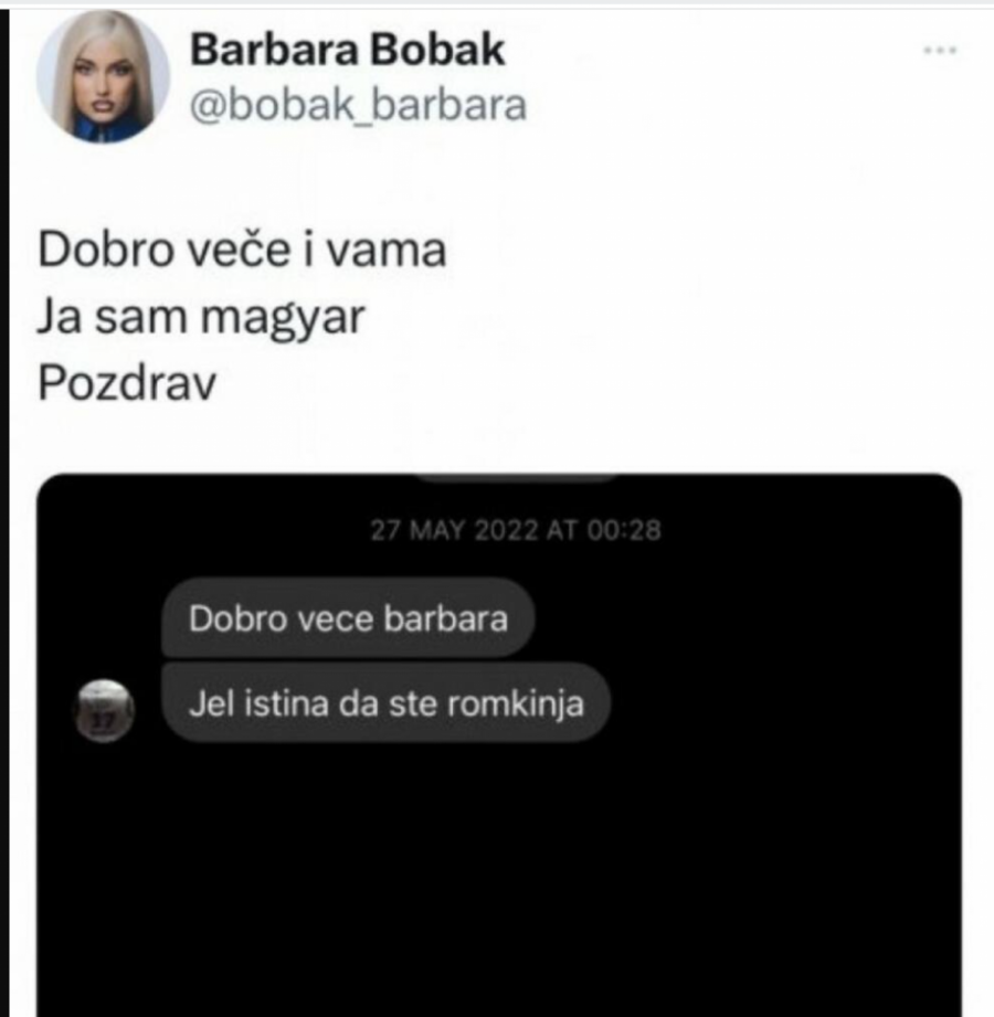 Jedna pevačicin fan je želeo da proveri ovu informaciju, pa joj je poslao poruku, koju je Barbara objavila i objasnila da ima mađarsko poreklo.