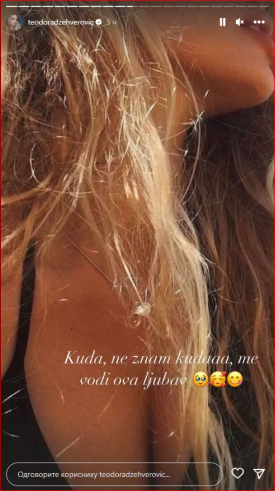Međutim, danas je na njenom Instagram profilu osvanula fotografija grudi, preko kojih je Teodora napisala stih pesme: