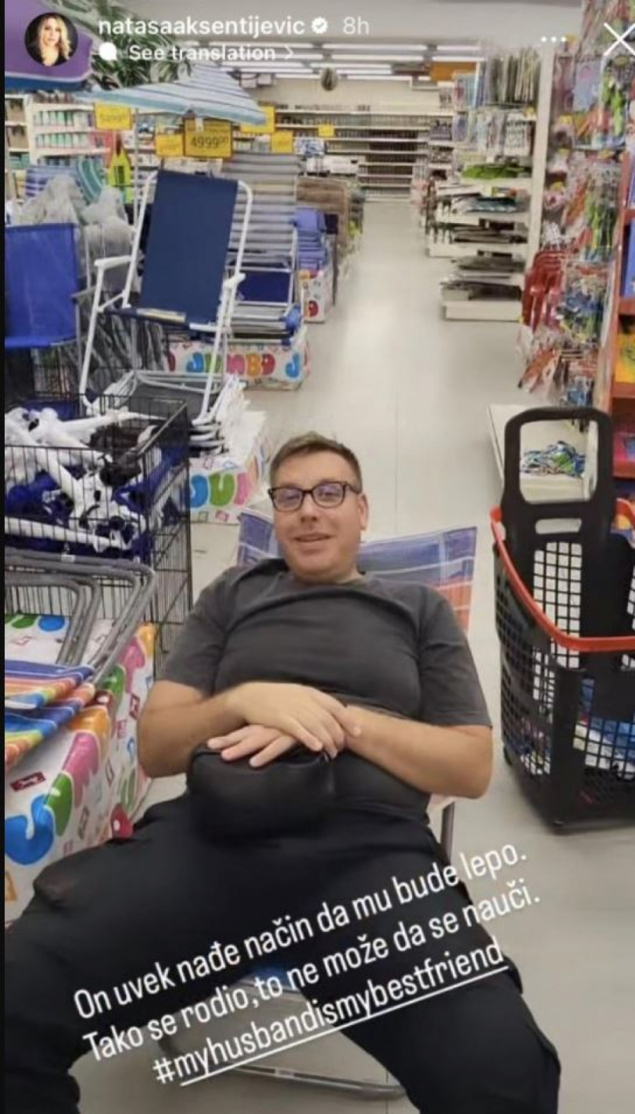 Nataša je sada objavila i fotografiju supruga, te pokazala kakva je njegova filozifija života. Njih dvoje su se, naime, zatekli u jednoj radnji, a Natašin suprug iskoristio je priliku da legne na jednu od stolica i zamišlja da je već na letovanju: