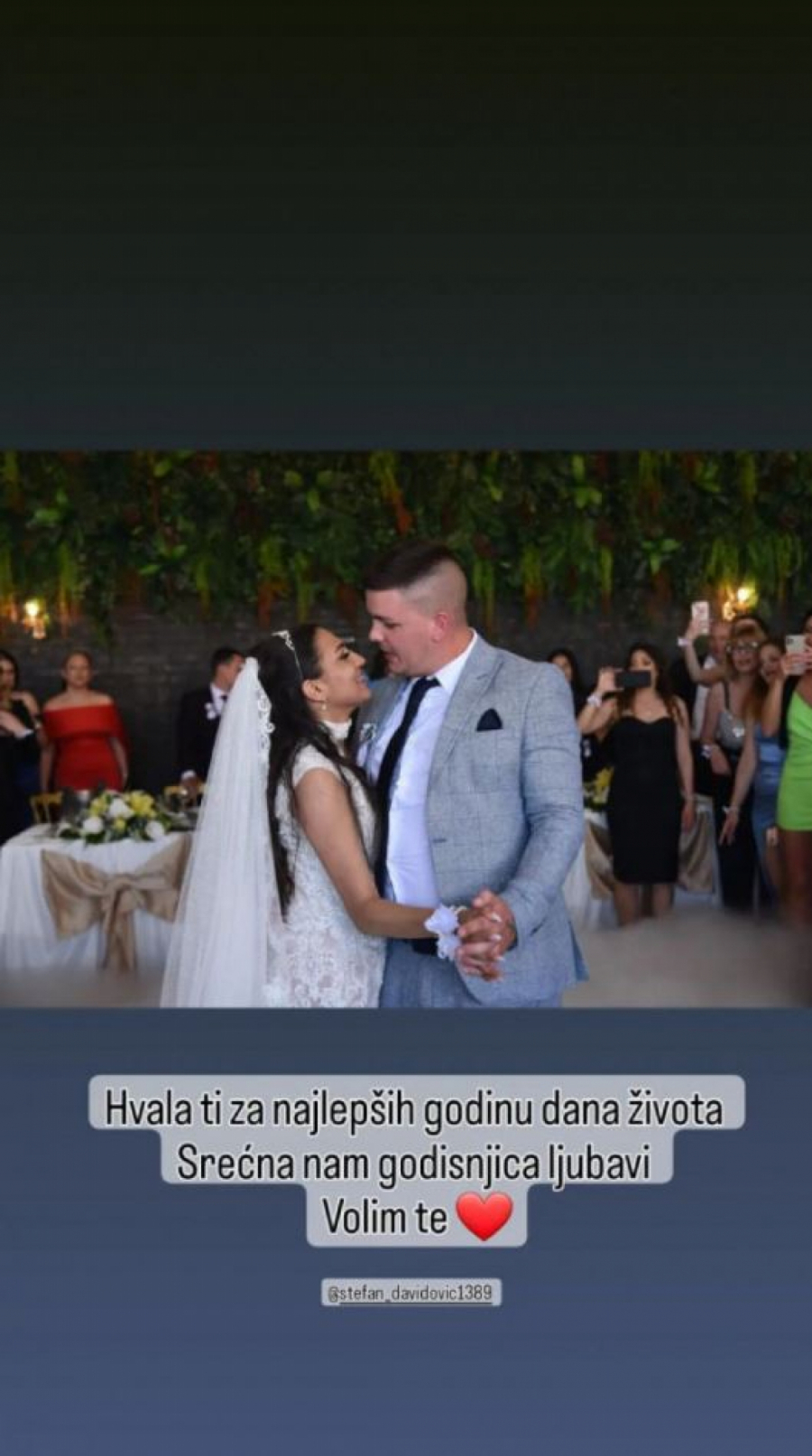 -Hvala ti za najlepših godinu dana života. Srećna nam godišnjica ljubavi. Volim te- emotivne su reči kojima je Marija Ramadanovski čestitala svom voljenom suprugu njihov značajan dan.