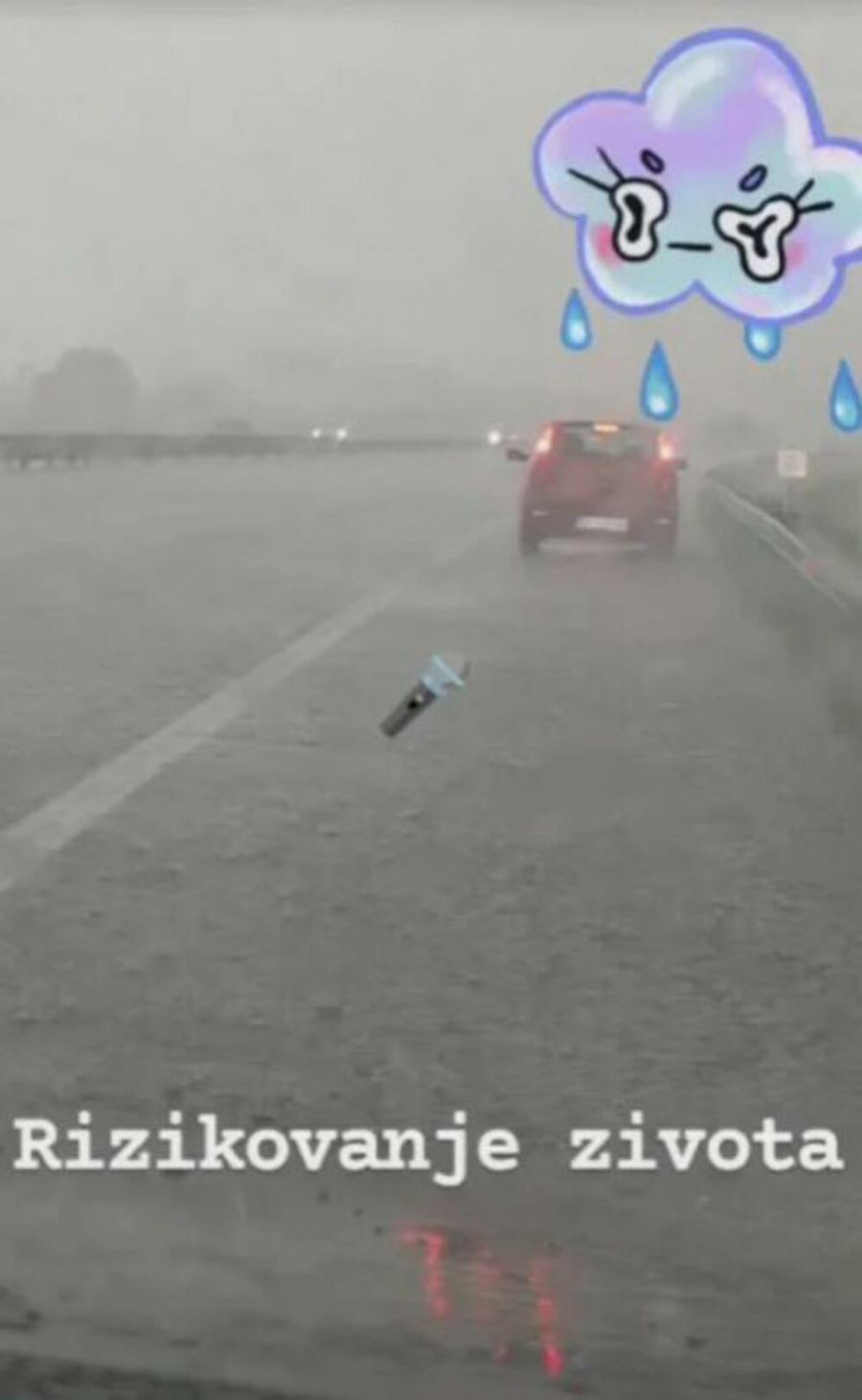 Međutim, zbog jačine padavina, Natalija se zabrinula za njih dvoje, pa je snimala nekoliko kadrova kakva ih je kiša stigla na putu. Oni su krenuli na nastup koji su ranije imali ugovoren, a zbog sigurnosti su morali da uspore cestom.