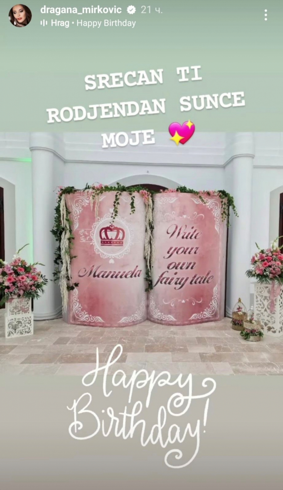 Pevačica Dragana Mirković pre dva dana organizovala je glamuroznu proslavu ćerkinog 21. rođendana, a slavljenica Manuela imala je utisak da nosi ulogu princeze iz najlepše bajke.
