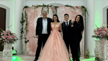 Slavljenica je blistala u roze balskoj haljini dok se mama opredelila za crnu kombinaciju, a muški deo porodice, otac Toni i brat Marko, bio je obučen u crno-bele nijanse.