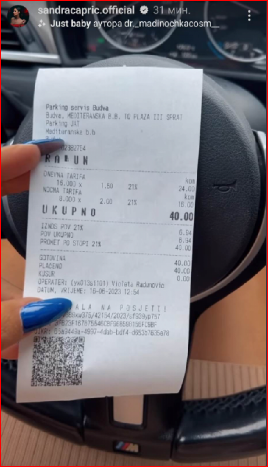 -Upravo se nalazim na crnogorskom primorju gde je parking pored hotela 40 evra za jednu noć - rekla je Sandra vidno šokirana.