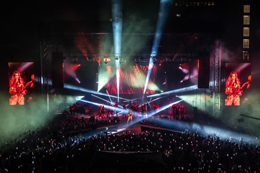 Pevačica se pojavila kao "vatrena kaubojka", u crvenom kostimu sa šeširom, a koncert je započela numerom "Samo na jednu noć", koja je postala potpuni hit i potpuno pokorila estradu, te na Jutjub platformi broji skoro 60 miliona pregleda, a sve popraćeno je brojnim plesačicama na sceni.