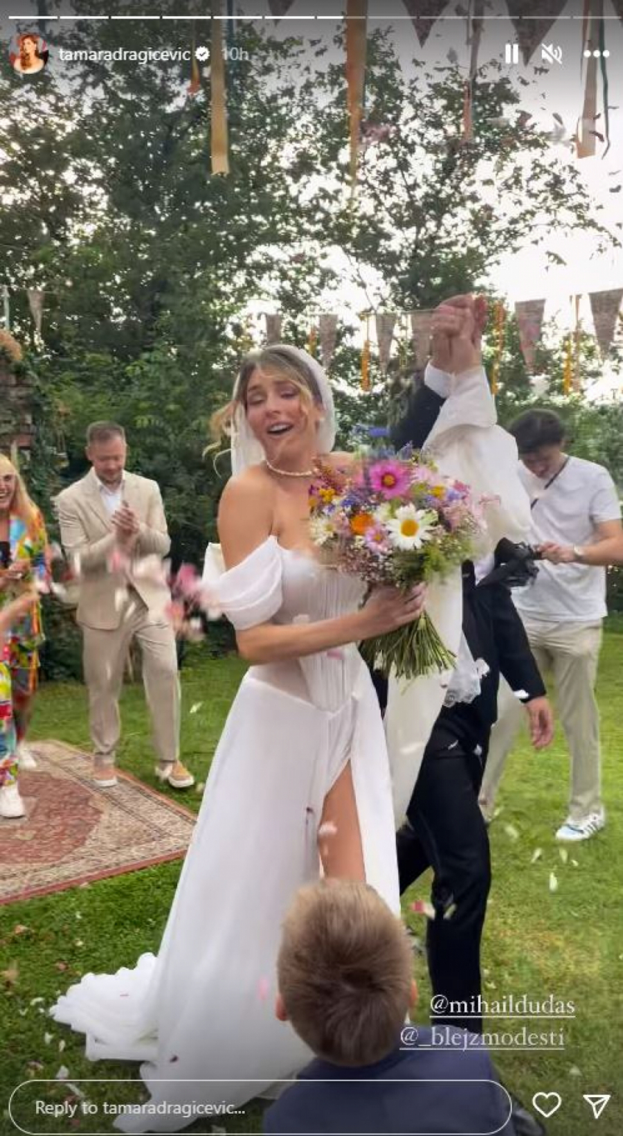 Jovanovićeva je, inače, tokom svadbe doživela peh o kom se i te kako priča. Ona je usred venčanja, dok je nameštala venčanicu, istu podigla rukom, te su gosti mogli da vide donji veš koji je nosila.