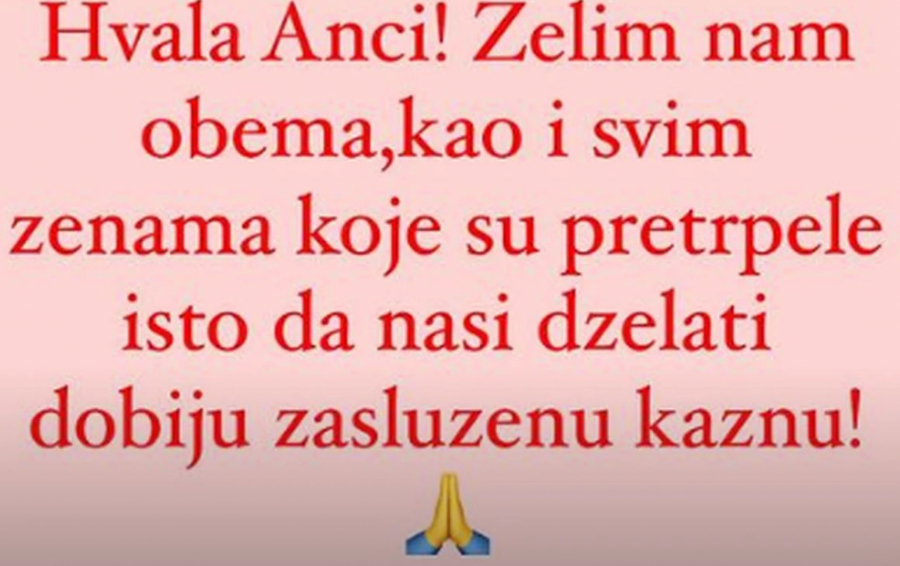 -Hvala Anči. Želim nam obema, kao i svim ženama koje su pretrpele isto da naši dželati dobiju zasluženu kaznu - navela je Nataša u objavi.
