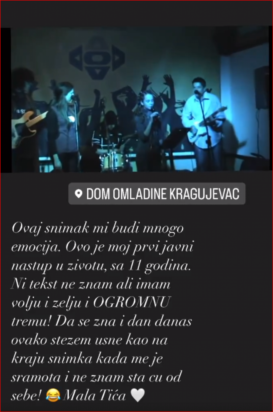 Naime, Tijana je objavila video njenog prvog javnog nastupa koji je imala samo samo 11 godina kada je, kako priznaje imala ogromnu tremu, ali i želju za ostvarenjem svjih muzičkih snova.