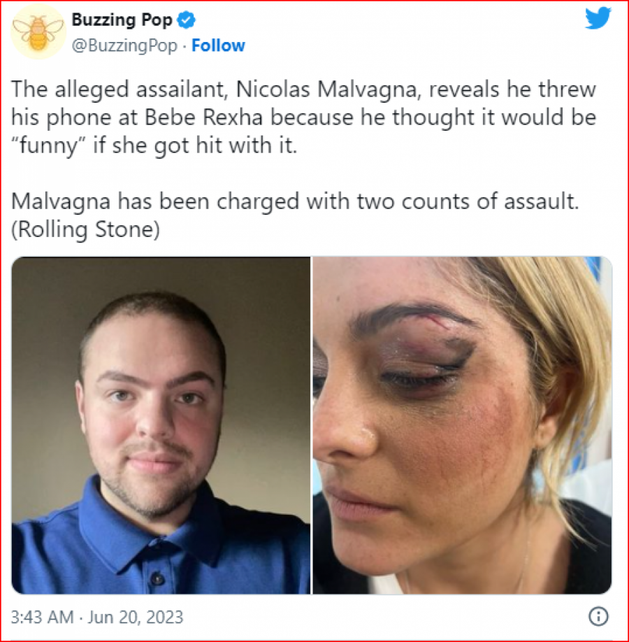 Sa druge strane, njujorška policija privela je Nikolasa Malvanju (27) iz Nju Džerzija, koji je priznao da je gađao pevačicu telefonom.