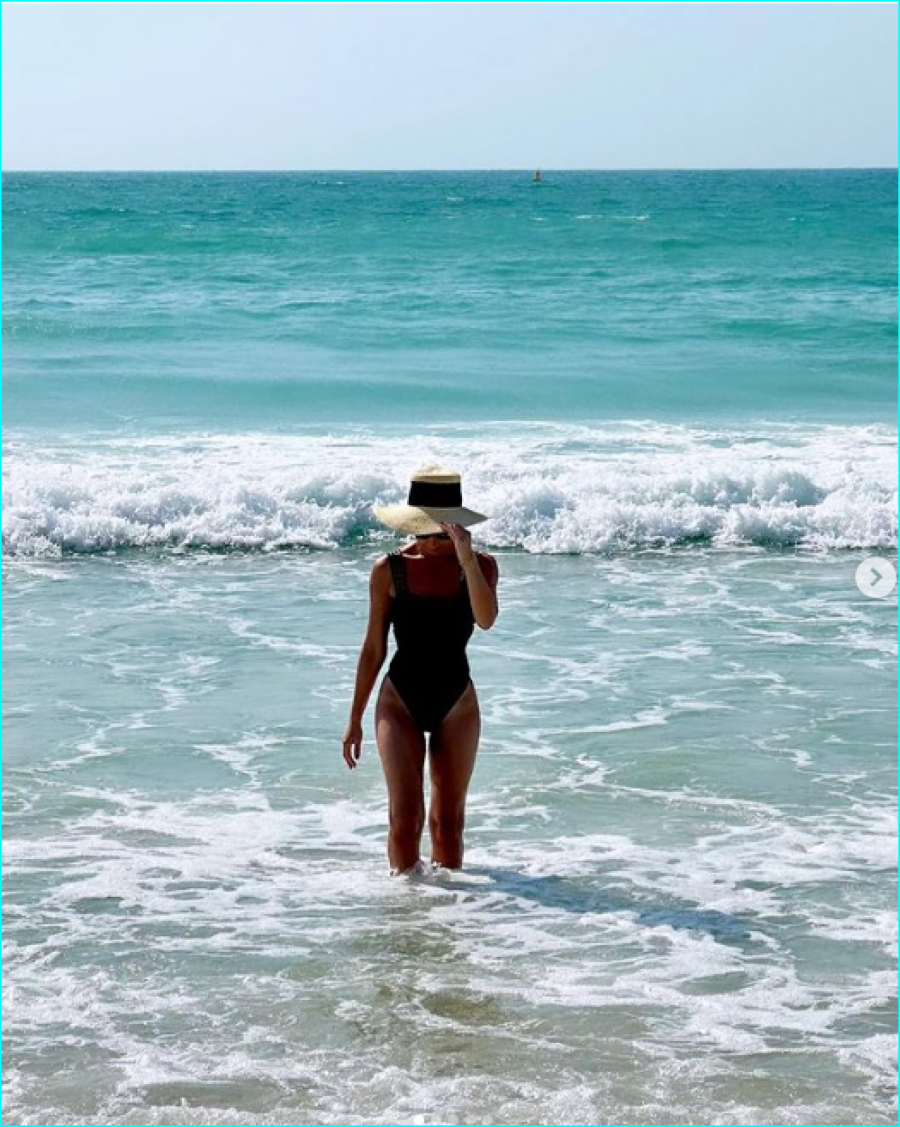 Na svom Instagramu je objavila kolaž fotografija, od kojih na nekima pozira u kupaćem kostimu u moru, a na nekima pozira u mini suknji, slikajući se u gradu sa svojim prijateljicama.