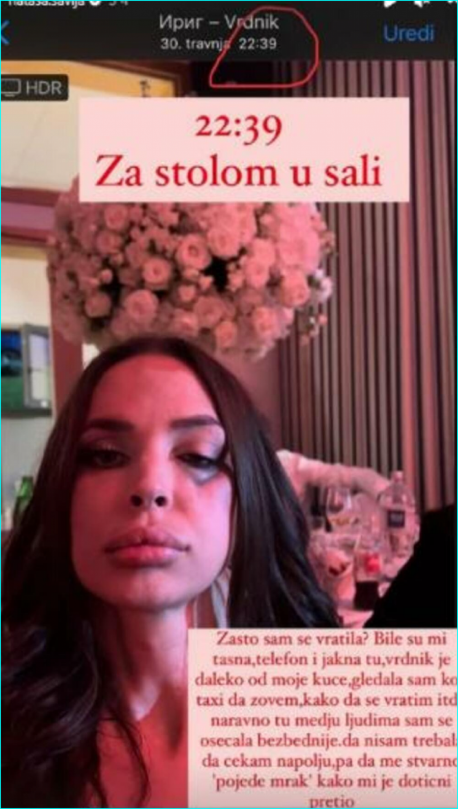 Potom je okačila trenutak sa vremenskom odrednicom 22:31:07.