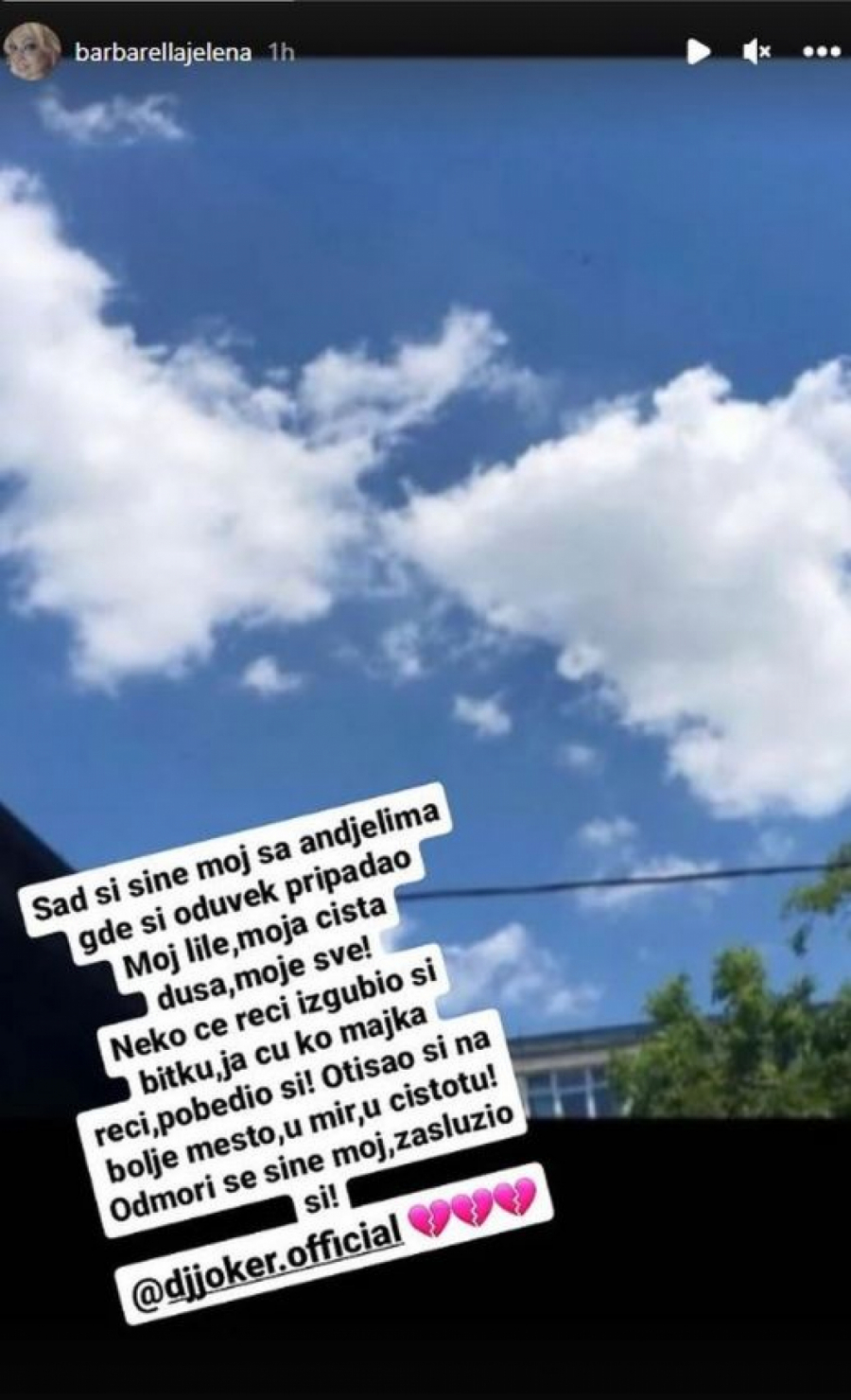 -Sad si, sine moj, sa anđelima, gde si oduvek pripadao. Moj lile, moja čista duša, moje sve! Neko će reći izgubio se bitku, ja ću kao majka reći, pobedio si! Otišao si na bolje mesto, u mir, u čistotu. Odmori se, sine moj, zaslužio si - napisala je Đoletova majka uz fotografiju neba.