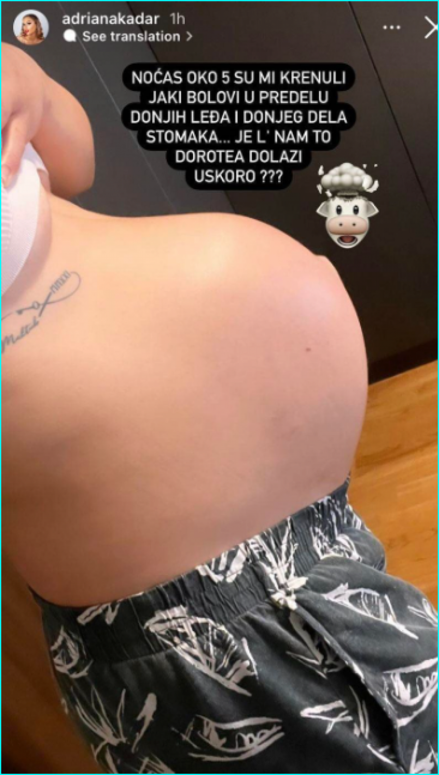 Adriana Kadar Džehverović primljena je u bolnicu nakon kontrakcija koje je dobila, svi željno iščekuju dolazak Dorotee na svet, a najbliži, kao i javnost, prate situaciju iz minita u minut i nestrpljivo očekuju porođaj!