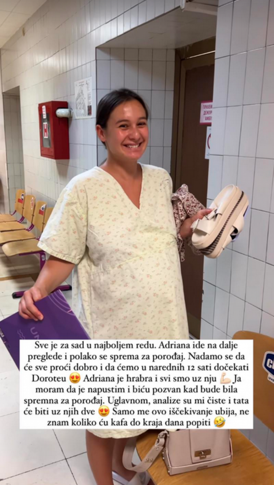 -Sve je za sada u najboljem redu. Adriana ide na dalje preglede i polako se sprema za porođaj. Nadamo se da će sve proći dobro i da ćemo u narednih 12 sati dočekati Doroteu. Adriana je hrabra i svi smo uz nju. Ja moram da je napustim i biću pozvan kada bude bila spremna za porođaj. Uglavnom, analize su čiste i tata će biti uz njih dve. Samo me ovo iščekivanje ubija, ne znam koliko ću kafa do kraja dana popiti- napisao je Sava.