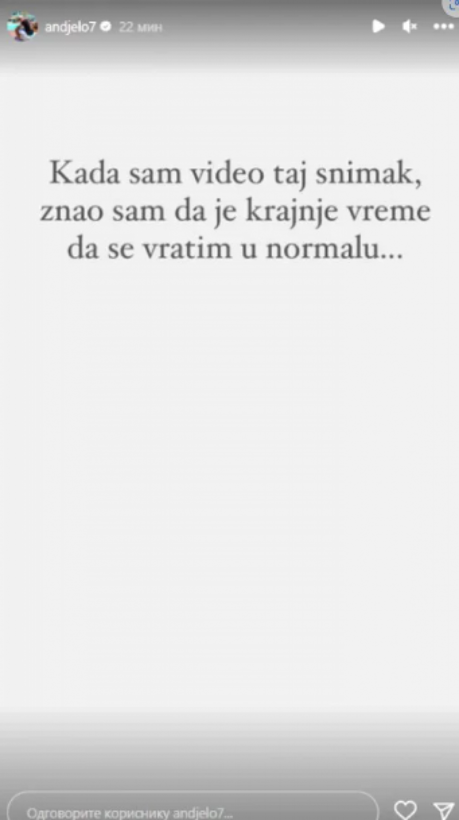 -Kada sam video taj snimak, znao sam da je krajnje vreme da se vratim u normalu - napisao je Ranković.