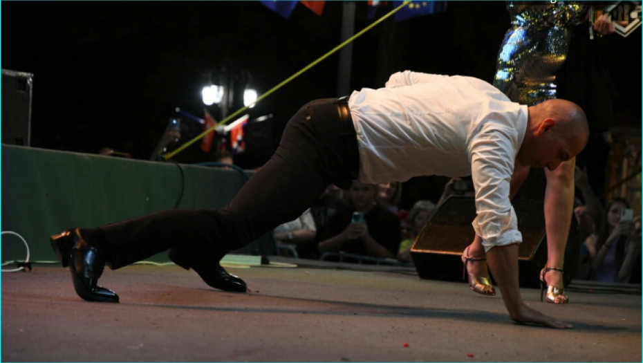 Topalko se, naime, pojavio na festivalu u Vrnjačkoj banji, gde se zahvalio na nagradi koju je dobio, a zatim je na oduševljenje publike počeo da radi sklekove.