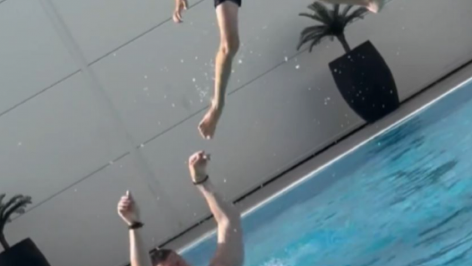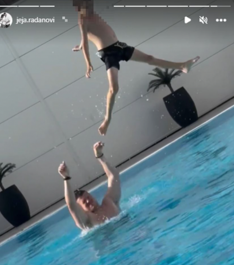 Sloba se najpre u bazenu igrao sa Jeleninim sinovima, te je malom Naumu u jednom trenutku pevač poslužio i kao odskočna daska.