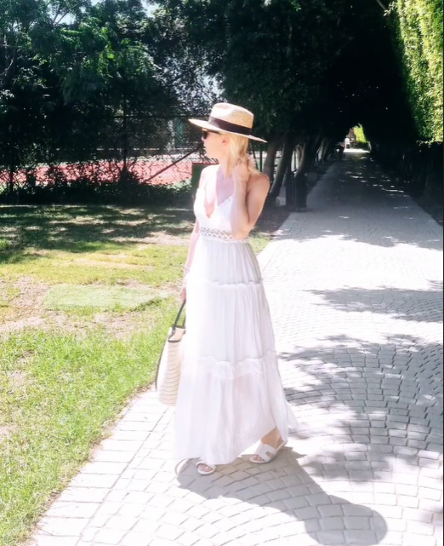 Irina je pre par dana otišla na odmor u Tursku odakle je svoje pratioce, kojih ima više od 51.000, počastila vrelom fotografijom sa plaže. Na fotografili nosi kratku haljinu od belog lana koja je obrubljena pink bojom i ističe jene izvajane noge. Kreacija ima dubok dekolte, a svemu tome dodatnu čar daju lepršavi rukavi. Svoju odevnu kombinaciju zaokružila je tamnim naočarima za sunce i slamnatim šeširom.