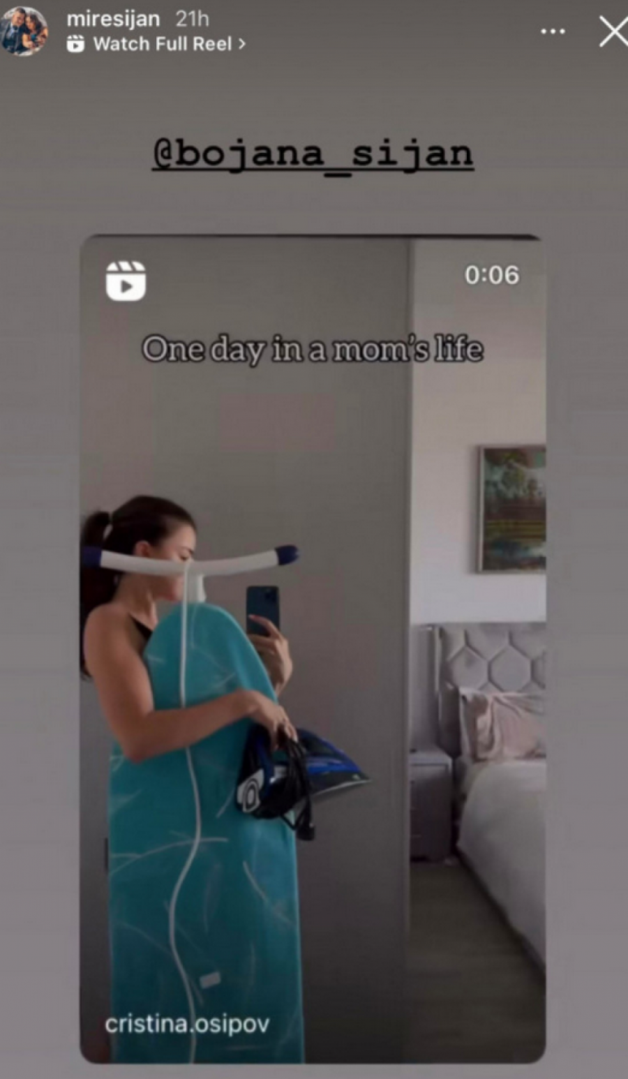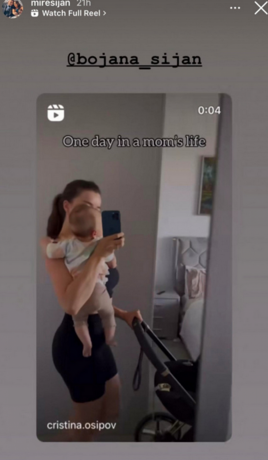 Sin Goce Božinovske objavio je snimak koju je objavila jedna influeserka kako bi pokazala kako je jedan dan svake majke vrlo naporan. Žena radi više stvari istovremeno po kući, dok se ujedno brine o deci. Jednom rukom kuva i čisti, drugom ljulja bebu, a nađe se vremena i za vežbanje.