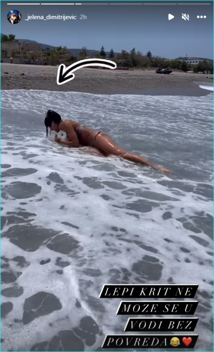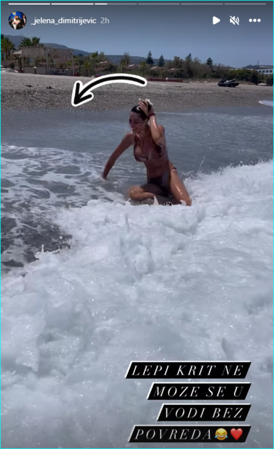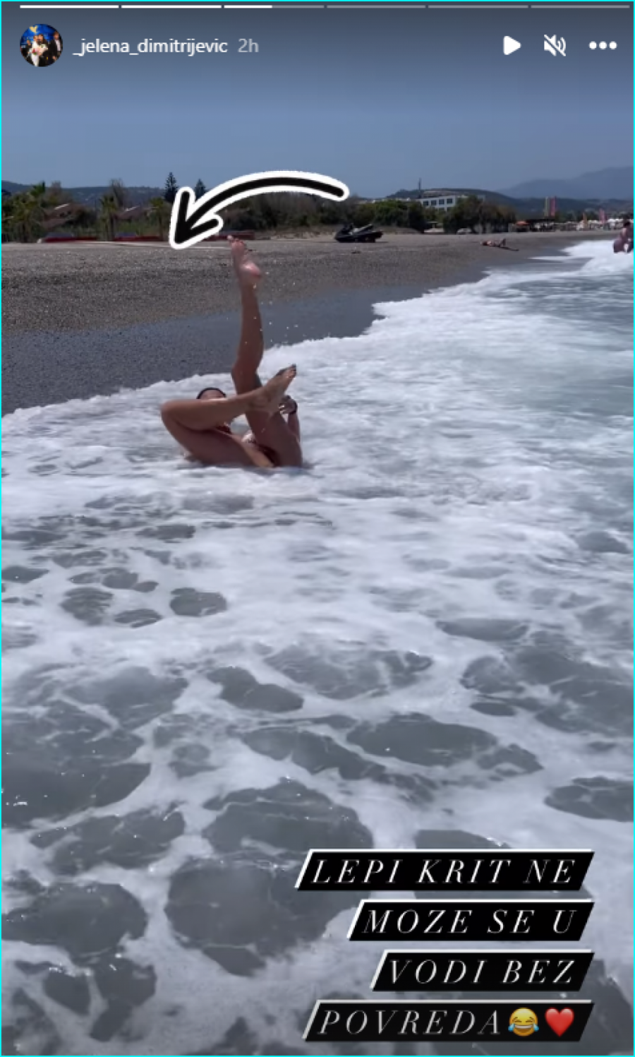Jelena je, naime, podelila trenutak dok se snimala na plaži, a onda i peh koji joj se dogodio.