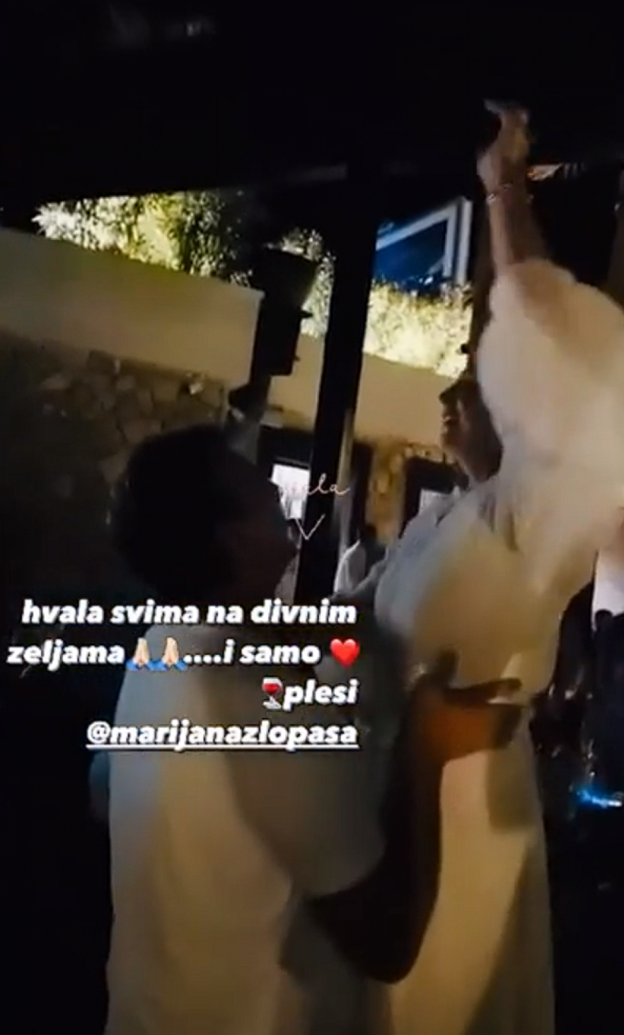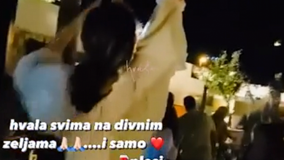 U jednom momentu Nataša se popela na stolicu, a njen suprug Nenad Šarenac uhvatio ju je oko struka, dok je ona pevala u glas i podigla ruke uvis.