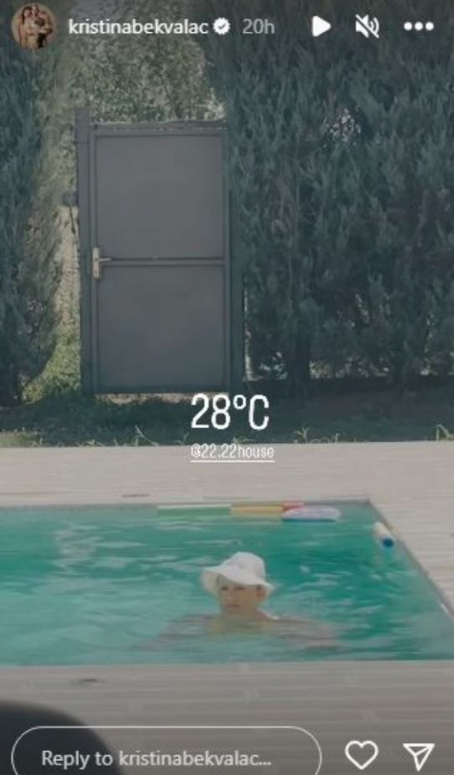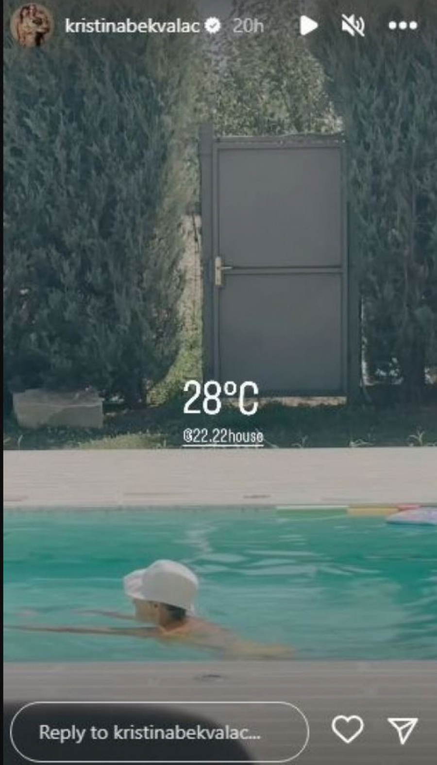 Kako se Mira relaksira i osvežava u bazenu zabeležila je Kristina i objavila na pomenutoj društvenoj mreži uz komentar da je ona kraljica ove kuće.