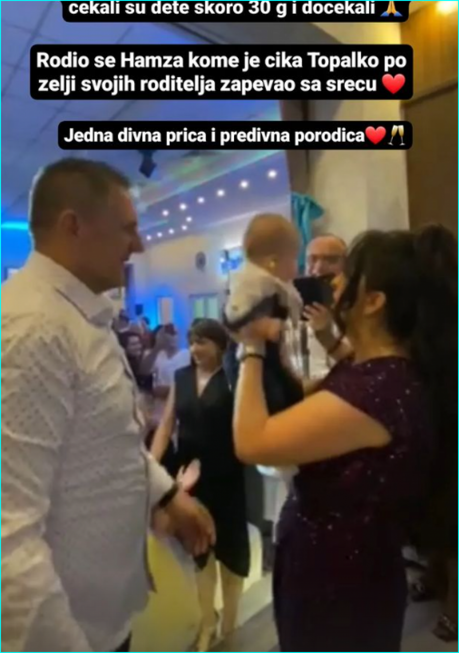 - Čekali su dete skoro 30 godina i dočekali ga! Sinu je čika Topalko, po želji svojih roditelja, zapevao za sreću. Jedna divna priča i predivna porodica - napisao je Topalko, ne skrivajući emocije.