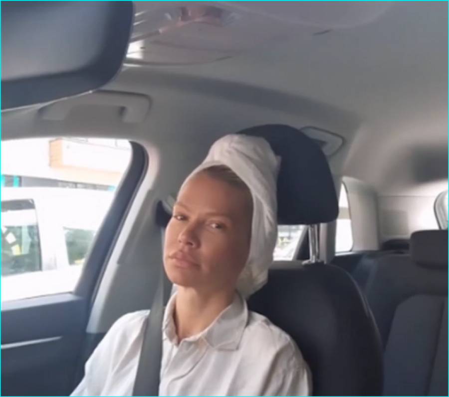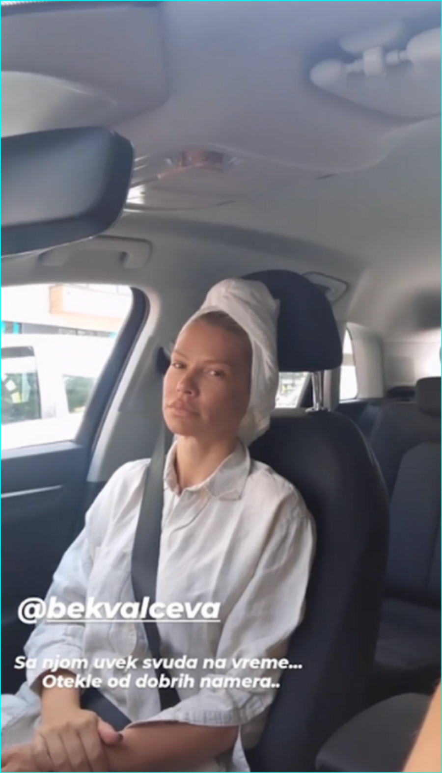 Nataša je sad uslikana u kolima sa turbanom na glavi, bez trunke šminke na licu, a o njenom raspoloženju govorio je opis na slici.