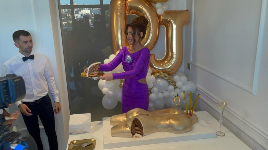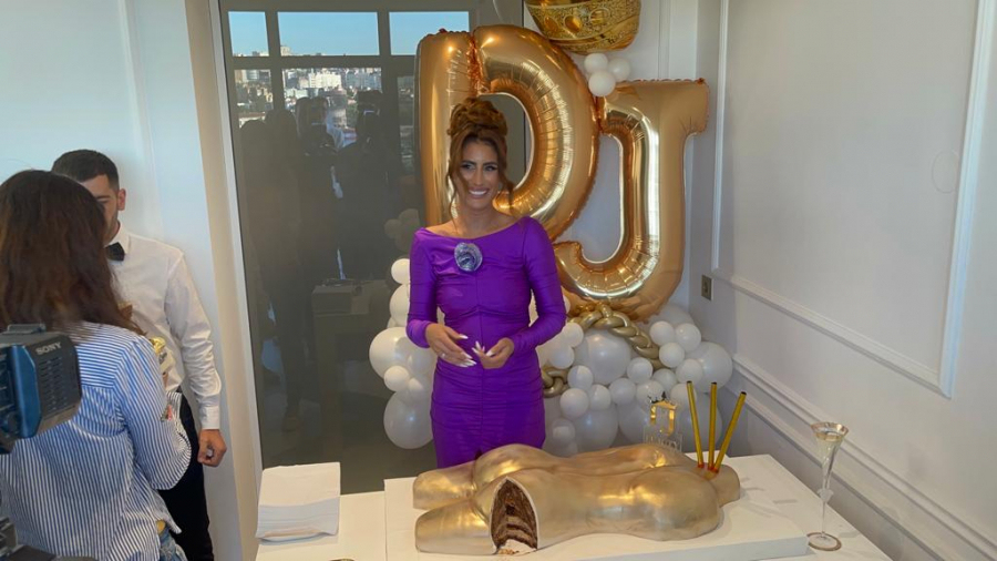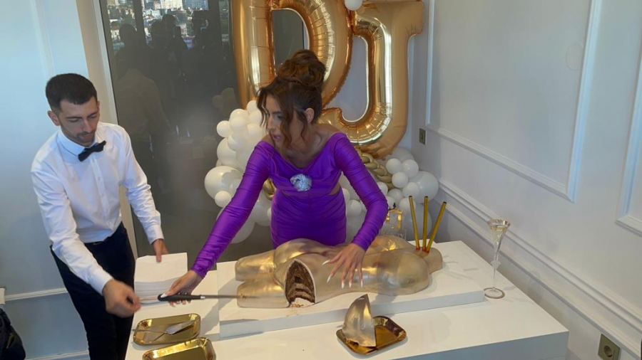 Naime, baloni sa njenim inicijalima nisu izostali, a torta je bila u obliku golog ženskog tela.