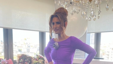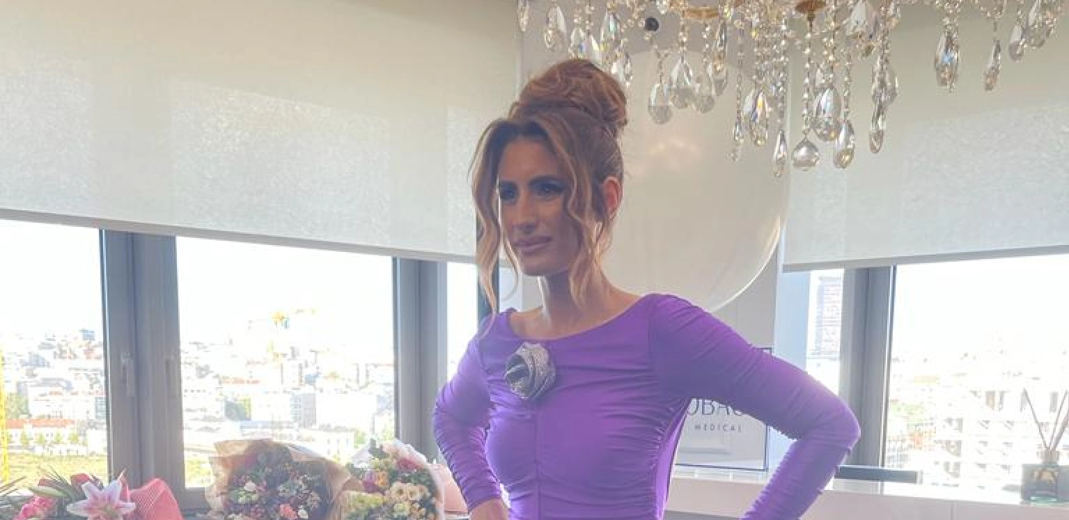 Dijana je za ovu priliku obukla dugu ljubičastu haljinu sa prorezima na kukovima, a torta je rađena specijalno za ovu priliku.