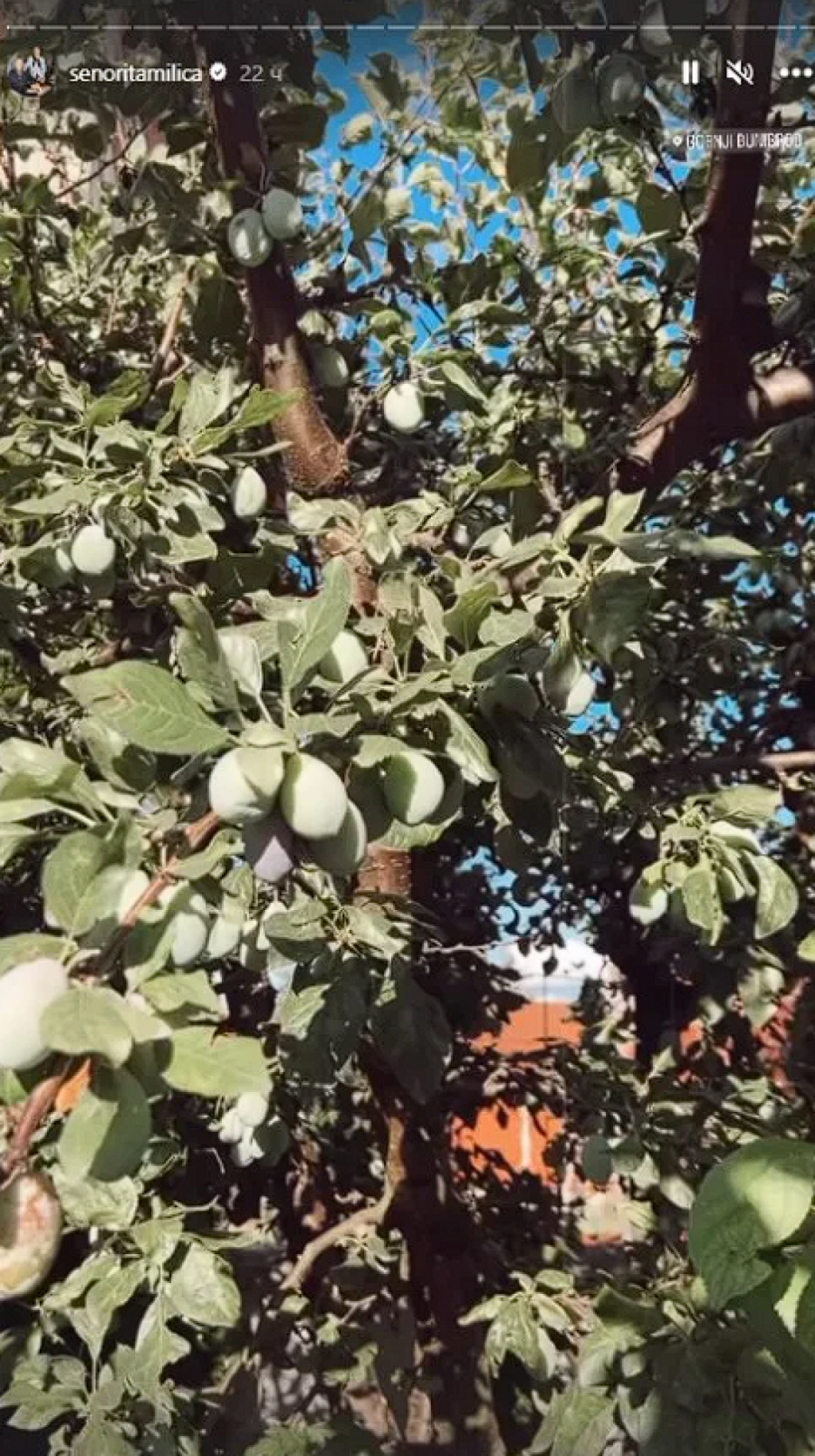 - Slušajte vi ovaj crvkut i mir. Ovde šljive stižu za jedno dvadesetak dana, ja bih rekla. A imam domaće nektarine. A imam i jabuku koju očigledno nismo prskali baš kako treba - pokazala je Milica dvorišni voćnjak na svom imanju, koji je juče posetila.