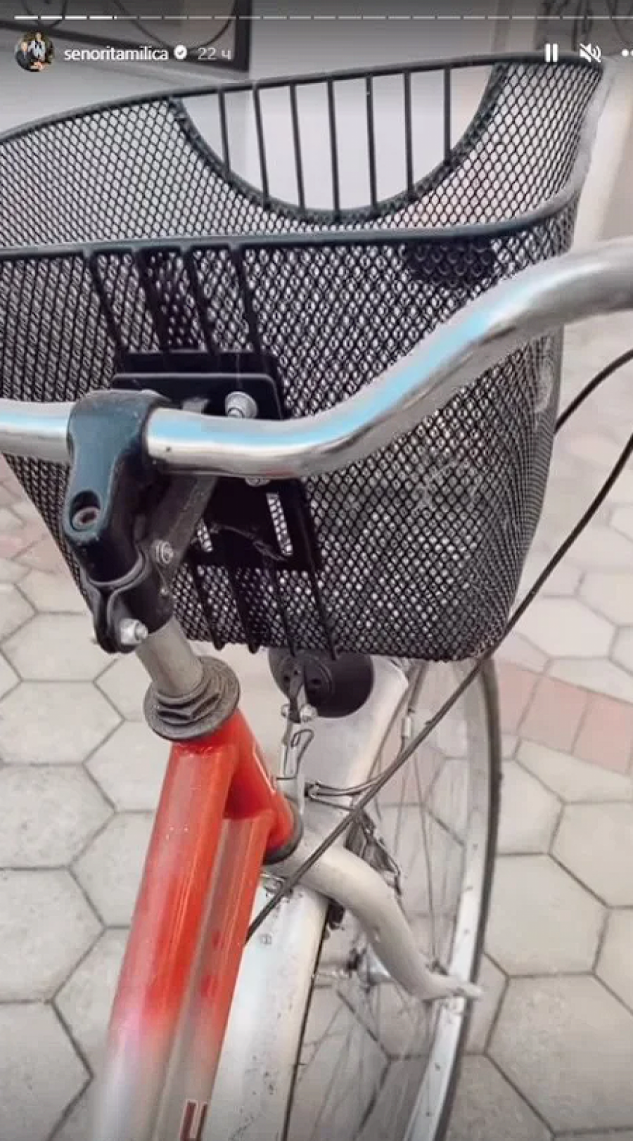 Stara biciklica puna prašine. Sad ću da je operem i idem da se vozim malo kroz svoje selo, rekla je ushićeno pevačica objašnjavajući šta se sve vidi u snimcima koje je objavila na svom Instagram storiju.