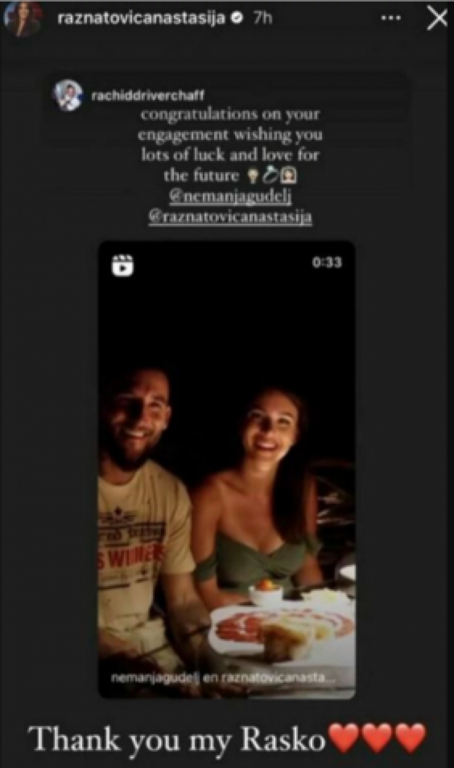 Anastasija i Nemanja nisu krili sreću, a svi su očekivali prvu reakciju članova porodice. Međutim, prvi im je javno čestitao njihov vozač Rašid, kojeg smatraju za velikog prijatelja, a koji im je poželeo sve najlepše.